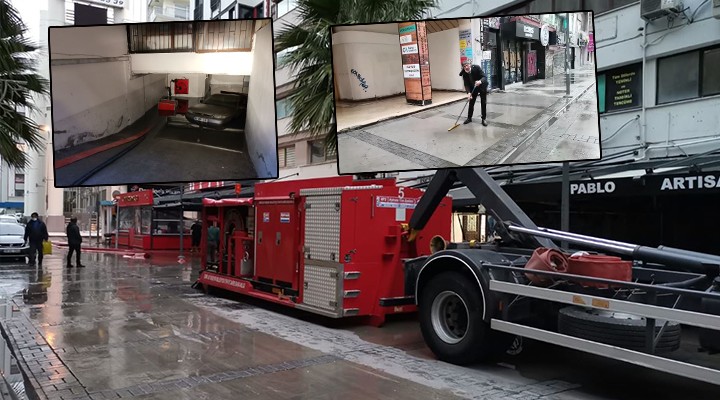 Alsancak'ta otopark? tamamen sular alt?nda kalan ??çimenler Apartman?'n?n görevlisi Göksel Efe de su tahliyesi için gelen itfaiye ekiplerine te?ekkür etti.
