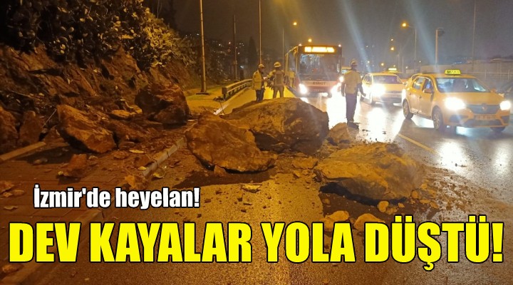Al?nan bilgiye göre, kentte gün boyu etkili olan ya??? nedeniyle kopan kaya parçalar?, Bayrakl?'dan Kar??yaka istikametine giden 09 AG 006 plakal? otomobilin önünde hasara yol açt?.