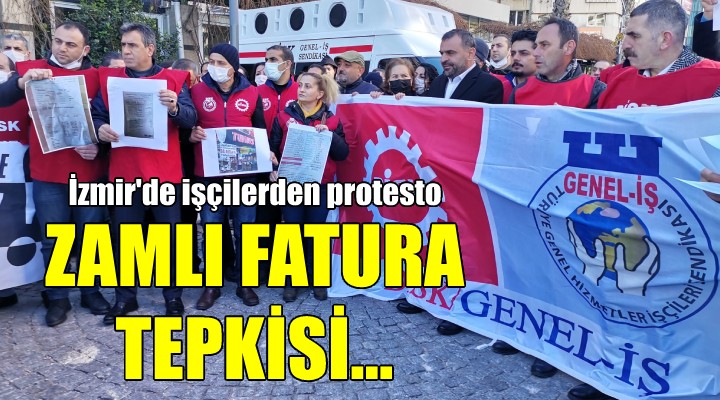 SONKALE?ZM?R- Konak eski Sümerbank önünde toplanan i?çiler zaml? elektrik faturalar?n?n yer ald??? foto?raflar ta??rken, "Genel grev, genel direni?", "Hükümet istifa" sloganlar? att?. ??çiler ad?na bas?n aç?klamas?n? D?SK Ege Bölge Temsilcisi Memi? Sar? yapt?.