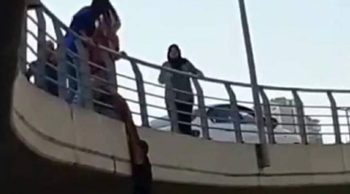 Olay, ö?len saatlerinde, Anadolu Caddesi'nde meydana geldi. ?Bunal?mda oldu?unu iddia eden A.E., yakla??k 10 metre yükseklikteki köprüye ç?kt?.A.E. bir süre sonra elleriyle köprü demirini tutup, kendisini bo?lu?a sark?tt?. Olay? gören çevredekilerden baz?lar? bo?lukta sal?nan A.E.'nin yan?na geldi. Çevredekilerden baz?lar? durumu sa?l?k ve itfaiye ekiplerine bildirdi baz?lar? da A.E.'nin elinden tutup yukar? çekmeye çal??t?. Yard?ma gelen birkaç ki?i sayesinde, A.E. itfaiye ve sa?l?k ekipleri gelmeden yukar? çekilerek köprüye ç?kar?ld?. Olay yerine gelen polis, A.E.'yi ifadesini almak üzere emniyete götürdü.