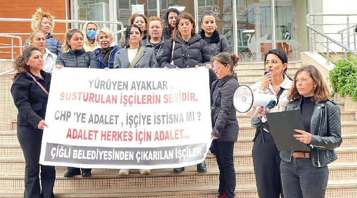Çi?li Belediyesi önünde toplanan i?çiler, "Yürüyen ayaklar susturulan i?çilerin sesidir", "CHP'ye adalet, i?çiye istisna m??", "Adalet herkes için adalet" yaz?l? pankart açt?, slogan att?.