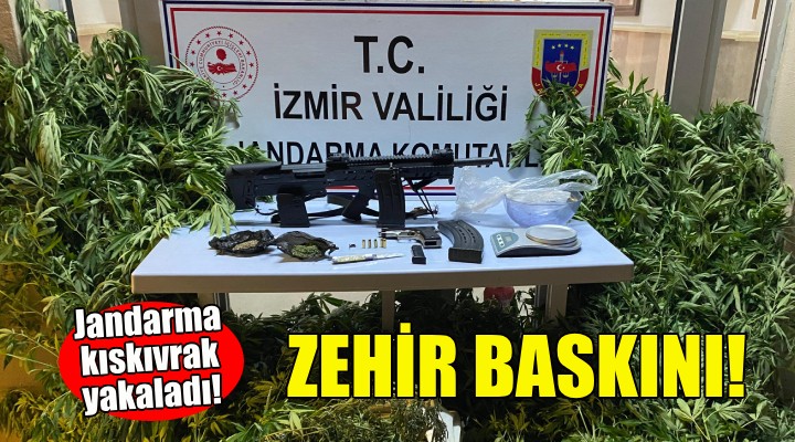 Jandarma ekipleri Beyda?'daki zeytinlik alan ve belirlenen ikamete operasyon yapt?. Adreslerde yap?lan aramalarda 3 kilogram kubar esrar, 137 kök kenevir bitkisi, 35 gram kenevir tohumu, ruhsats?z av tüfe?i, tabanca, hassas terazi, ve fi?ekler ele geçirildi.