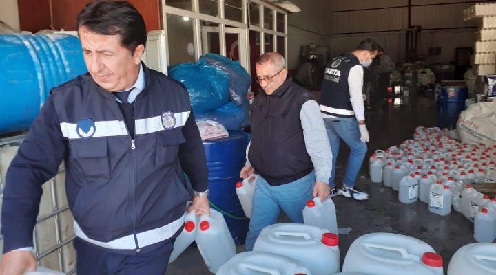 ?lk olarak Buca Kaynaklar Olduruk mevkiinde daha önce kaçak tiner deposu olarak faaliyet gösteren ve zab?ta ekiplerince ruhsats?z olarak tespit edilip mühürlenen i?letmeye bask?n gerçekle?ti. Piyasada el dezenfektan? sat??lar?n?n artmas?n? f?rsat bilen i?letmecinin, kapat?lan depoyu yasa d??? olarak yeniden aç?p, sa?l?ks?z ko?ullarda dezenfektan üretti?i belirlendi. Kanserojen madde içeren ve cilt hastal?klar? yapmaya neden olabilecek yüzlerce litre dezenfektana el konuldu.