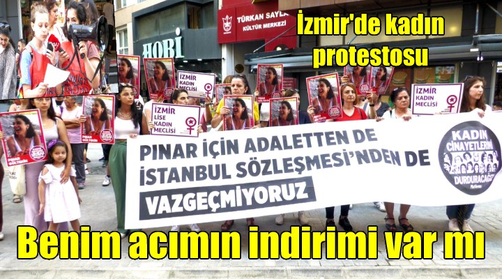 SONKALE?ZM?R- ?zmir’de kad?n örgütleri, Alsancak K?br?s ?ehitleri Caddesi'nde iki ayr? eylem düzenleyerek, P?nar Gültekin'in katili Cemal Metin Avc?'ya “haks?z tahrik indirimi” uygulanarak 23 y?l hapis cezas? verilmesini protesto etti.