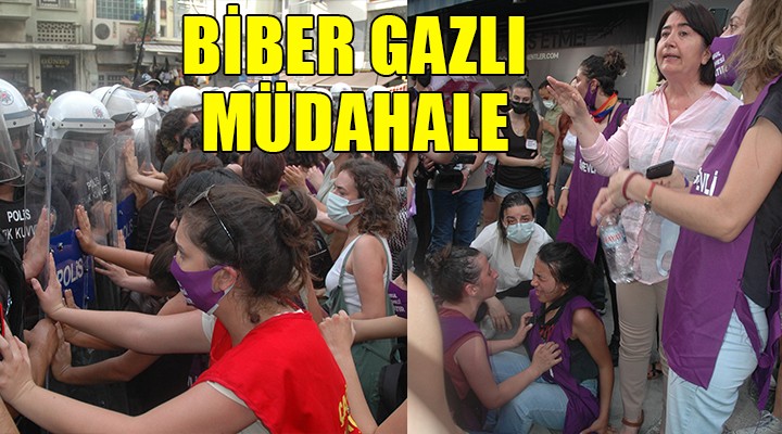 Barikat? a?mak ve eylemi ara sokaklarda sürdürmek isteyen baz? kad?nlara polis biber gazl? müdahalede bulundu. Gazdan etkilenen baz? kad?nlar fenal?k geçirirken, HDP ?zmir Milletvekili Serpil Kemalbay polisle görü?üp eyleme izin verilmesini istedi, ancak ba?ar?l? olamad?.