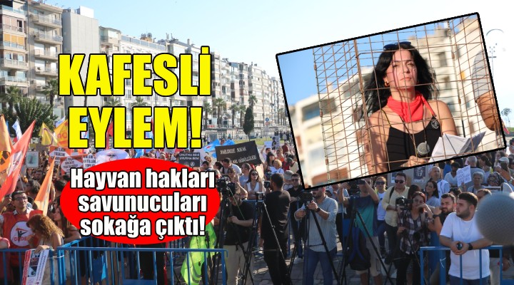 ?zmir'de kafesli eylem... Hayvan haklar? savunucular? soka?a ç?kt?!