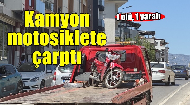 Akdo?an Caddesi'nde T.A. (56) idaresindeki plakas? henüz belirlenemeyen kamyon ile M.E.Y'nin (23) kulland??? 35 BRH 497 plakal? motosiklet çarp??t?.