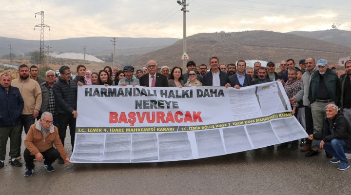 Mahkeme kararlar?n?n uygulanmas?n? ve tesisin kapat?lmas?n? talep eden grup, "Harmandal? halk? daha nereye ba?vuracak?" yaz?l? pankart açt?.
