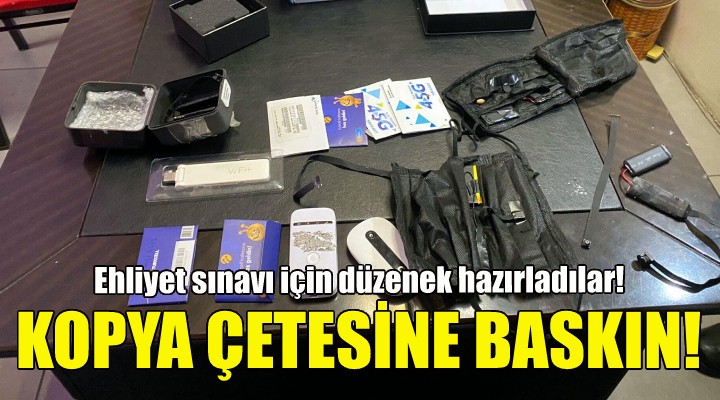 ?zMenemen'deki Erdinç Ahmet Cengiz Mesleki ve Teknik Anadolu Lisesi E-S?nav Merkezi'nde dönem dönem gerçekle?tirilen ehliyet ve SRC belgesi s?navlar?nda, özel düzeneklerle kopya çekerken yakalanan ki?iler hakk?nda 6114 Ölçme Seçme ve Yerle?tirme Merkezi Hizmetleri Kanunu'na Muhalefet suçundan adli i?lem yap?ld?. Ard?ndan da Menemen ?lçe Emniyet Müdürlü?ü Asayi? Büro ekipleri, kopya çeken bu ki?ilerin kulland?klar? düzenekleri haz?rlay?p, temin eden ?üphelilere yönelik çal??ma ba?latt?.