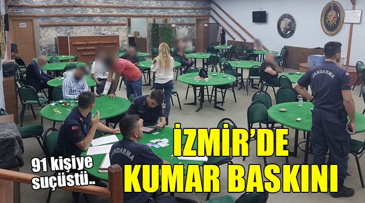 SONKALE?ZM?R-?zmir ?l Jandarma Komutanl??? ekipleri, Bornova'ya ba?l? Gökdere ve Yaka mahallelerinde kumar oynat?ld??? bilgisi üzerine operasyon düzenledi. Ö.I. ve S.S. isimli ?ah?slara ait umuma aç?k i?letmelere 12 ve 14 Eylül'de yap?lan bask?nlarda kumar oynarken suçüstü yakalanan 91 ki?iye 165 bin 529 TL para cezas? kesildi.