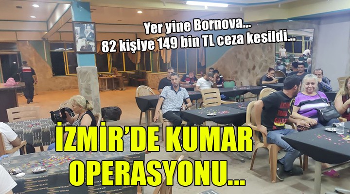 SONKALE?ZM?R- ?zmir ?l Jandarma Komutanl??? ekipleri, Bornova ilçesine ba?l? Be?yol ve Gökdere mahallelerinde kumar oynat?ld??? ihbar? üzerine operasyon düzenledi. ?ki ayr? kahvehaneye 23 Temmuz'da yap?lan bask?nda kumar oynarken suçüstü yakalanan 82 ki?iye 149 bin 158 TL para cezas? uyguland?.