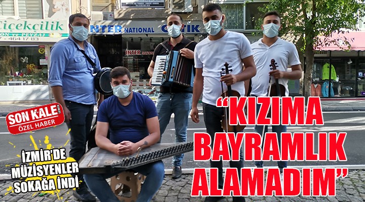 SONKALE?ZM?R (ÖZEL)-?zmir'de e?lence sektöründe i? yapamaz duruma gelen müzisyenler geçimlerini sa?lamak için sokaklarda çal?p söylüyor. ?zmir'in Konak ilçesine ba?l? Alsancak semtinde sokaklar? gezerek mesleklerini icra eden müzisyenlere bayram? evlerinde geçiren yurtta?lar destek oluyor. Gönüllerinden kopan paray? a?a??ya atan yurtta?lar?n deste?iyle geçimlerini sa?lad?klar?n? belirten müzisyenler ya?ad?klar? s?k?nt?lar? SONKALE'ye anlatt?.