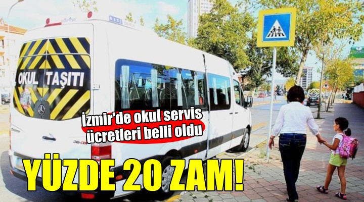 ?zmir Servis Arac? ??letmecileri Odas? Ba?kan? Erdem Mert de ?zmir'de yeni e?itim ö?retim y?l? servis ücretlerine yüzde 20 zam yap?lmas?n?n, ?zmir Büyük?ehir Belediyesi Ula??m Koordinasyon Merkezi (UKOME) taraf?ndan onayland???n? söyledi.
