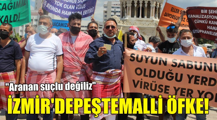 Türkiye Hamamlar ve Spalar Birli?i üyeleri Türkiye’nin dört bir yan?ndan gelerek ?zmir’de eylem yapt?. Konak Atatürk Meydan? Saat Kulesi önünde bulu?an i?letme sahipleri ve çal??anlar? pe?tamal ve sabunla eylem yapt?. “Hamamlar virüs yuvas? de?il”, “Aranan suçlu de?iliz” sloganlar? att?.