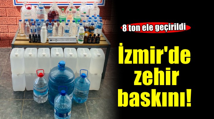 Menderes ilçesi Fevzi Çakmak Caddesi'nde bulunan bir ev ve karavan ile Bornova ilçesi Egemenlik Mahallesi'nde bir depo ve araçta yap?lan aramalarda, 8 ton 223 litre etil alkol, alkol yap?m?nda kullan?lan aroma verici 10 kimyasal madde ve alkol ölçüm cihaz? ele geçirildi.
