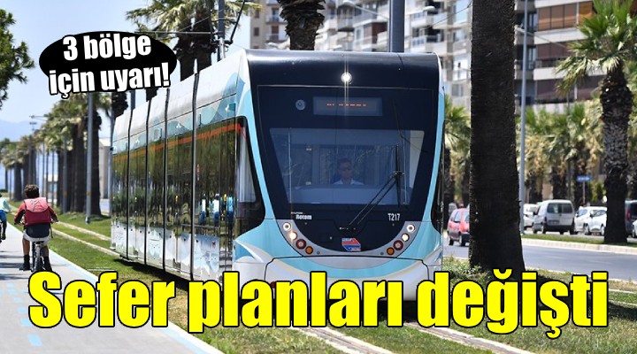 ?zmir Büyük?ehir Belediyesi ula??mda sefer planlar? ile ilgili duyuru yapt?. 20 Eylül Cuma'y? 21 Eylül Cumartesi'ye ve 21 Eylül Cumartesi'yi 22 Eylül Pazar gününe ba?layan gece; ?zmir Büyük?ehir Belediyesi Fen ??leri Dairesi Ba?kanl???'n?n gerçekle?tirece?i Karata? yaya üst geçidi çal??malar? sebebiyle Konak Tramvay?'nda 23.45-00.20 saatleri aras?ndaki seferler Halkap?nar-Konak ?skele duraklar? aras?nda yap?lacak. ?lgili saat aral???nda Halkap?nar-Fahrettin Altay güzergah?nda ESHOT otobüsleriyle ula??m sa?lanacak. Fahrettin Altay-Halkap?nar seferleri, çal??madan etkilenmeyecek. ?zmirli yurtta?lar seyahat planlar? için ?zmir Metro'yu, Karantina ve Karata? tramvay duraklar?n?n yerine ise Mithatpa?a Caddesi üzerinden geçen ESHOT otobüslerini kullanabilecek.