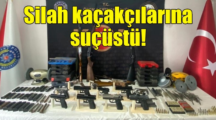 ?zmir'in Ödemi? ilçesinde silah kaçakç?lar?na yönelik operasyonda, 4 ?üpheli gözalt?na al?nd?, çok say?da tabanca ve fi?ek ele geçirildi.
