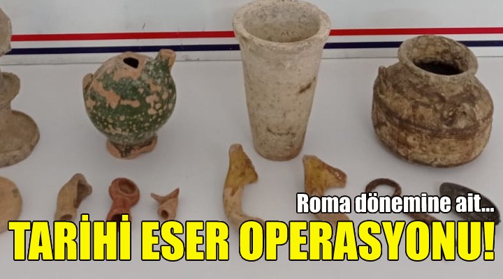 Araçtaki aramada Roma dönemine ait oldu?u belirtilen 14 parça tarihi eser ele geçirildi. Gözalt?na al?nan A.G. ve Y.K, i?lemleri için ?lçe Jandarma Komutanl???na götürüldü.