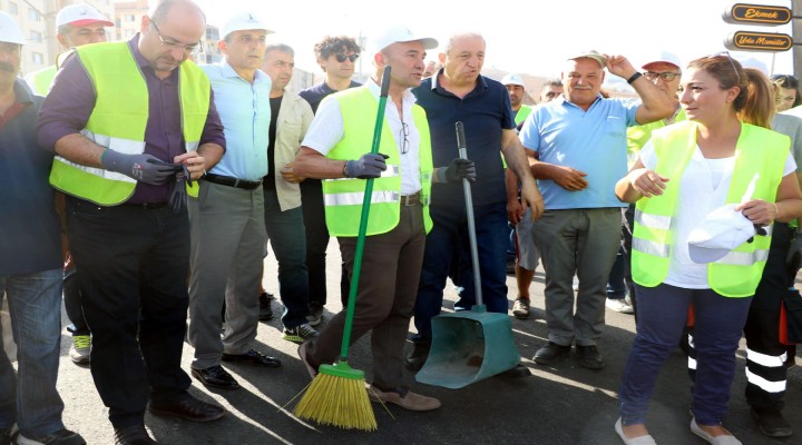 ?zmir Büyük?ehir Belediye Ba?kan? Tunç Soyer taraf?ndan '?zmir'in sokaklar? evimizin koridoru' slogan?yla olu?turulan ve 11 ilçede yürütülecek olan temizlik hareketi, Çi?li'de ba?lat?ld?. Cumhuriyet Mahallesi'nde Tunç Soyer ve Çi?li Belediye Ba?kan? Utku Gümrükçü'nün kat?l?m?yla gerçekle?tirilen etkinlik kapsam?nda, belediye ekiplerinin yan? s?ra sivil toplum görevlileri ve gönüllüler de bir araya geldi. Temizlik çal??malar?nda Büyük?ehir Belediyesi'nin vakumlu yol süpürme, bas?nçl? yol y?kama, afi? sökme araçlar? ile süpürme personeli görev ald?. Öte yandan etkinli?e kat?lan gönüllüler de süpürme personeli ile birlikte çöpleri toplayarak temizlik çal??malar?na destek verdi. Her hafta farkl? bir mahallede yürütülecek olan temizlik çal??malar?nda, mahalle isimlerinin hem afi?lerle, hem de Büyük?ehir Belediyesi'nin sosyal medya hesaplar?ndan duyurulaca?? bildirildi.