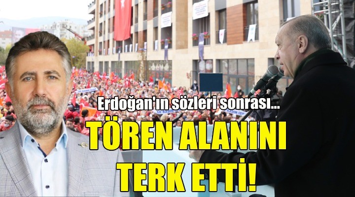 SONKALE?ZM?R-Cumhurba?kan? Recep Tayyip Erdo?an'?n 30 Ekim ?zmir depreminin ard?ndan TOK? taraf?ndan yap?lan 741 konutun teslimi töreni krize sahne oldu. Erdo?an'?n törende yapt??? konu?mada sarf etti?i, "Bu ?ehri turist gibi ziyaret eden muhalefet partisi genel ba?kan? acaba kendi belediye ba?kanlar?na ?zmir'in hangi derdine derman olacak hangi talimat? vermi?tir? Bay Kemal'in, CHP'nin ortaklar?na bak?n, notunuzu verin" sözleri, protokolde yerini alan Bayrakl? Belediye Ba?kan? CHP'li Serdar Sandal'? k?zd?rd?. Depremin en çok vurdu?u, Bayrakl?'n?n Belediye Ba?kan? Sandal, Erdo?an'?n bu sözlerinin ard?ndan tören alan?n? terk etti.