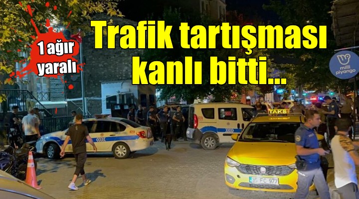 Olay, saat 03.00 Anafartalar Caddesi'nde meydana geldi. ?ddiaya göre, ak?am saatlerinde trafikte tart??an iki grup gece saatlerinde tekrar bir araya geldi. Sözlü ba?layan tart??ma gerginli?in yükselmesiyle silahl? kavgaya dönü?tü. Basmane Polis Merkezi Amirli?i'nin önünde meydana gelen olayda taraflar birbirine ate? açt?. Olay sonucu ?.R.K. (21) s?rt?na isabet eden kur?un ile yaralan?rken, di?er grup olay yerine geldikleri hafif ticari araç ile kaçt?. Polis ekipleri olay? yat??t?rmak için havaya uyar? ate?i açt?. ?hbar üzerine bölgeye sevk edilen sa?l?k ekiplerince ilk kontrollerinde durumunun a??r oldu?u belirlenen ?.R.K. ambulans ile ?zmir Tepecik E?itim ve Ara?t?rma Hastanesi'ne kald?r?ld?. Tedavi alt?na al?nan ?.RK.'n?n hayati tehlikesinin devam etti?i ö?renildi. Polisin olayla ilgili ba?latt??? inceleme sürüyor.