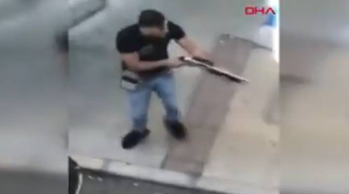 Öte yandan, olay an? ise bir ki?i taraf?ndan saniye saniye görüntülendi. Görüntülerde, elinde pompal? tüfek bulunan bir ki?i tehditler savurarak elindeki tüfe?i ate?liyor. Bu s?rada kar??s?nda bulunanlar ise "Yapma" diyerek engellemeye çal???yor. ?üpheli, vatanda?lara yakla??nca iki grup aras?nda arbede ya?an?yor. Silahla sokak ortas?nda deh?et saçan ?üphelinin kimli?i henüz belirlenemedi?i ve firarda oldu?u ö?renildi. ?üphelinin yakalanmas? için ba?lat?lan çal??malar sürüyor.
