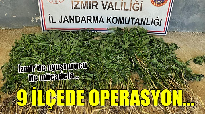 Bay?nd?r, Beyda?, Çe?me, Karaba?lar, K?n?k, Kiraz, Ödemi?, Seferihisar ve Torbal?'da düzenlenen operasyonlarda 13 kilo 900 gram kubar esrar, 15 gram metamfetamin, 60 adet sentetik hap, 651 kök kenevir bitkisi ile 16 adet uyu?turucu içme aparat? ele geçirildi.