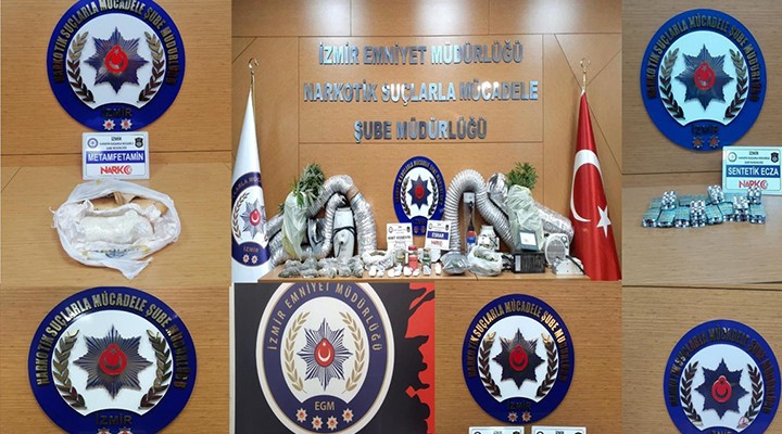 Al?nan bilgiye göre, ?zmir Emniyet Müdürlü?ü ekiplerince 8-14 Mart tarihlerinde gerçekle?tirilen operasyonlarda 1 kilo 665 gram esrar ve skunk, 1 kilo 247 gram metamfetamin, 21 gram kokain, 2 gram eroin, 4 kök kenevir, 785 gram sentetik kannabinoid, 4 bin 498 ye?il reçeteyle sat?lan ilaç, 47 sentetik uyu?turucu hap, 1 tabanca, 2 tüfek, 15 fi?ek ve uyu?turucu ticaretinden elde edildi?i de?erlendirilen 840 lira ele geçirildi.