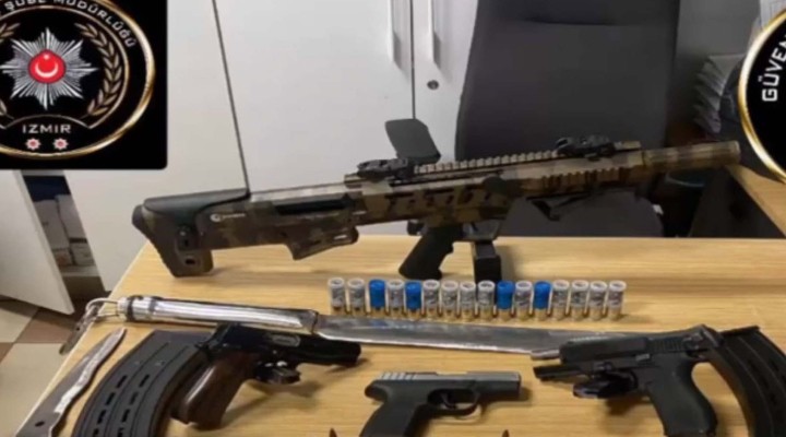 Asayi? ?ube Müdürlü?ü Güven Timleri Büro Amirli?i ekipleri taraf?ndan 10 Haziran tarihinde Konak bölgesinde uyu?turucu madde sat??? yapan ?üphelilere yönelik 3 adrese e? zamanl? operasyon düzenledi. Evlerdeki aramalarda ruhsats?z 3 tabanca, 1 pompal? tüfek,1 adet 72 santim uzunlu?unda k?l?ç, 1 adet iki ucunda 25 santim b?çak olan zincir, 58 sentetik hap, 15 gram metamfetamin, 2 hassas terazi ele geçirildi. G.S ve K.Y isimli ?üpheliler, gözalt?na al?nd?. Ayr?ca operasyon yap?lan adreslerden birinde hakk?nda 41 y?l kesinle?mi? hapis cezas? bulunan M.V. polis ekiplerine ate? edip, kaçmaya çal??t?. Polis, pe?ine dü?tü?ü M.V.'yi de yakalad?. Polisteki i?lemlerinin ard?ndan adliyeye sevk edilen ?üphelilerden G.S. ve K.Y., adli kontrol ?art?yla serbest b?rak?l?rken, M.V. tutukland?.