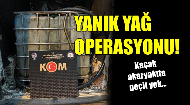 Ödemi? ?lçe Emniyet Müdürlü?ü Kaçakç?l?k ve Organize Suçlarla Mücadele ekipleri, Emiro?lu Mahallesi’ndeki sanayi sitesi içerisinde, G.Ç.’ye ait bir kamyonette kaçak akaryak?t bulundu?u ihbar? üzerine harekete geçti. Polisin yapt??? operasyonda, 2 bin 250 litre yan?k ya? ile 1 akaryak?t aktar?m düzene?i ele geçirdi. Olayla ilgili gözalt?na al?nan G.Ç.’nin polisteki i?lemlerinin sürdü?ü bildirildi.