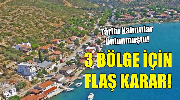 ?zmir'in Urla ilçesindeki 3 bölgede arkeolojik kal?nt?lara rastlan?lmas? üzerine bu bölgeler Resmi Gazete'de yay?mlanan kararla arkeolojik S?T alan? ilan edildi.
