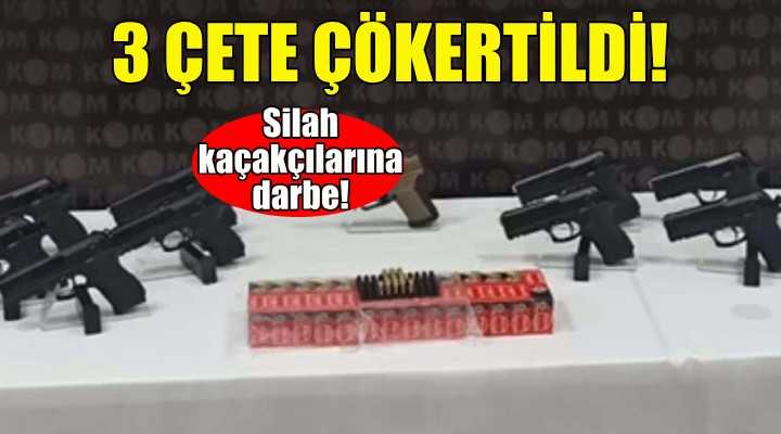 ?zmir ?l Emniyet Müdürlü?ü Kaçakç?l?k ve Organize Suçlarla Mücadele ?ube Müdürlü?ü ve Alia?a Kaçakç?l?k Suçlarla Mücadele Büro Amirli?i ekipleri, silah kaçakç?l??? yapan 3 ayr? çete tespit etti. Yap?lan teknik ve fiziki takibin ard?ndan ekipler, 19-23 Ekim tarihleri aras?nda belirlenen adreslere operasyon düzenledi.