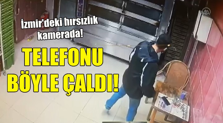 ?üphelilerin bir i?ltemeden cep telefonu çald??? anlar güvenlik kamerlar? taraf?ndan görüntülendi. Görüntülerde kad?n zanl? çevreyi kontrol ederken, erkek zanl?n?n ise masan?n üzerindeki cep telefonunu ald??? görülüyor.