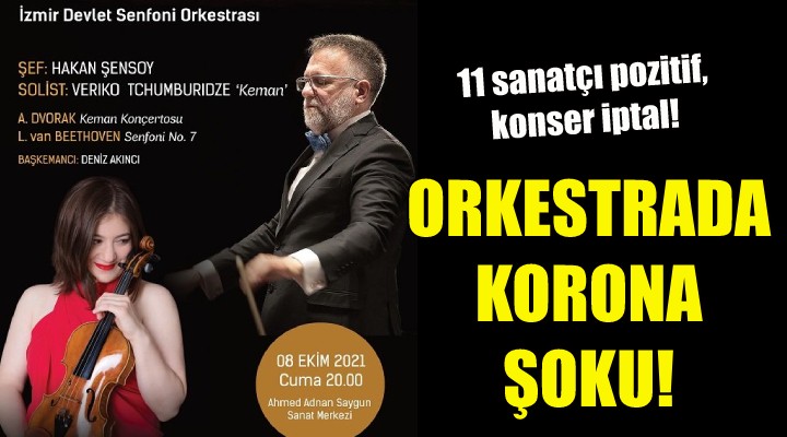 ?zmir Devlet Senfoni Orkestras?, 1 Ekim’de ?ef Gürer Aykal yönetiminde sezon aç?l?? konseri yapm?? ancak sonras?nda 3 sanatç?n?n testi pozitif ç?km??t?. Programa göre dün yap?lmas? gereken ikinci konser son anda iptal edildi.