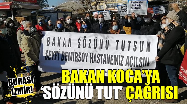 SONKALE?ZM?R-?zmir'de 30 Ekim depreminde hasar ald??? gerekçesiyle kapat?lan Buca Seyfi Demirsoy Devlet Hastanesi'nin yerine aç?laca?? duyurulan sahra hastanesinin henüz hizmete girmemesi tepki yaratt?. Buca Emek ve Demokrasi Platformu üyeleri baz? yurtta?lar?n da kat?l?m? ile ?irinyer semtinde bas?n aç?klamas? yaparak Sa?l?k Bakan? Fahrettin Koca'ya ça?r?da bulundu. Bakan Koca'n?n deprem sonras? ?zmir ziyaretinde, 250-300 yatakl? sahra hastanesinin 15 Ocak'ta aç?laca?? yönündeki sözü hat?rlat?l?rken, "Bakan sözünü tut", "Yarat?lan enkazda kalmayaca??z", "Paras?z sa?l?k, paras?z e?itim" sloganlar? at?ld?.