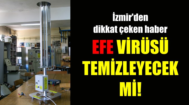 ?zmir Buca Süleyman ?ah Meslek ve Teknik Anadolu Lisesinde, yeni tip koronavirüse (Kovid-19) kar?? kapal? alanda ultraviyole (UV) ???nlar?yla dezenfeksiyon i?lemi yapabildi?i öne sürülen bir cihaz geli?tirildi. Okulun elektrik-elektronik ve metal teknolojileri alan? ö?retmenleri, Kovid-19 sürecinde bir araya gelerek "Ultraviyole Yüzey ve Hava Dezenfeksiyon Cihaz?" projesi haz?rlad?. Bu kapsamda çal??malar?n? yo?unla?t?ran ö?retmenler, k?sa sürede tasarlay?p üretim a?amas?na getirdikleri cihaza, "Efe" ad?n? verdi. Koronavirüsün ve di?er virüslerin etkisizle?tirilmesinde etkili oldu?u öne sürülen cihaz?n, ultraviyole ???nlar?ndan dolay? ortamda insan veya hayvan olmadan çal??t?r?lmas? gerekti?i belirtildi. Bunun için "Efe"ye zaman ayar? ve uzaktan kumanda özelli?i de kazand?r?ld?. Ö?retmenlerin "Efe"si yüzeyin ?ekli ve konumu ne olursa olsun 360 derecelik etkisi ile mikrop öldürücü ultraviyole radyasyon tu?pleri sayesinde dezenfeksiyon i?lemini yapabiliyor.