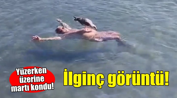 Eski Foça'da ya?ayan emekli Mehmet Oktay Özçelebi, iskele civar?nda oturdu?u s?rada denizde s?rt üstü yüzen bir ki?inin göbe?ine mart? kondu?unu fark etti. Cep telefonuyla bu anlar? kaydeden Özçelebi'nin sosyal medyada payla?t??? görüntü, çok say?da kullan?c? taraf?ndan be?enildi.
