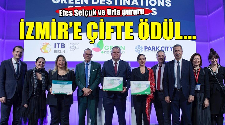 Uluslararas? Sürdürülebilir Turizm Konseyinin (GSTC) akredite kurulu?u olan Green Destinations (Ye?il Destinasyonlar) taraf?ndan verilen ödül ile ?zmir, sürdürülebilir turizm alan?nda önemli bir ba?ar?ya ula?t?. Dünyan?n en büyük destinasyon fuar? olan ITB Berlin kapsam?nda düzenlenen Green Destinations ödül töreninde sertifikalar? Selçuk Belediye Ba?kan? Filiz Cerito?lu Sengel ve Urla Belediye Ba?kan? Selçuk Balkan ile ?zmir Büyük?ehir Belediyesi bürokratlar? ald?.