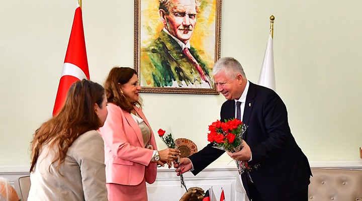 ?zmir Büyük?ehir Belediyesi Ba?kan Vekili Mustafa Özuslu, ?ehre gelen Almanya’n?n Frankfurt Belediye Ba?kan? Dr. Eskandari Grünberg’i a??rlad?. Ziyarette Frankfurt Belediyesi ile ?zmir Büyük?ehir Belediyesi aras?nda kültürel, sosyal ve ticari-ekonomik i? birli?i olanaklar?n?n geli?mesi amac?yla “?yi Niyet Beyan?” imzaland?.