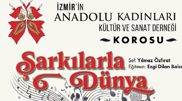 ?zmir'in Anadolu Kad?nlar? Kültür ve Sanat Derne?i Korosu, 30 Nisan Çar?amba günü ?zmir Büyük?ehir Belediyesi Ahmed Adnan Saygun Sanat Merkezi’nde (AASSM) “?ark?larla Dünya” konseri verecek. Konserlerden elde ettikleri ba??? gelirleriyle çok say?da ö?renciye burs deste?i veren koro, ezgilerini bu kez t?p fakültesi ö?rencileri için seslendirecek.