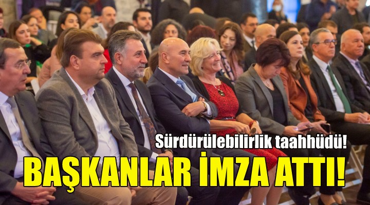 Programda ayr?ca “Sürdürülebilirlik Taahhüdü” imzaland?. ?zmir Büyük?ehir Belediye Ba?kan? Tunç Soyer ba?ta olmak üzere ilçe belediye ba?kanlar? da kent yönetimlerinde sürdürülebilirlik kriterlerine uyacaklar?n? taahhüt etti.