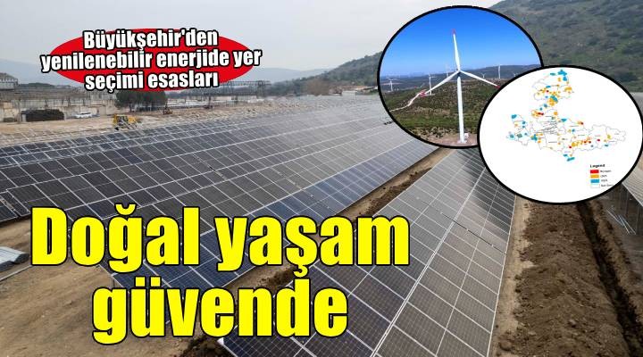 ?zmir Büyük?ehir Belediyesi, yat?r?mlar? plans?z ?ekilde artan ve kuruldu?u yer itibariyle do?ay? tahrip eden yenilenebilir enerji tesislerinin yer seçimi konusundaki ilke ve esaslar? yürürlü?e ald?. Meslek odalar?n?n katk?lar?yla belirlenen esaslarda, yer seçimleri yap?l?rken bölgenin insan sa?l???, do?al ve kültürel miras?, su kaynaklar?, yerle?im alanlar?, orman ve tar?m alanlar? önceliklendirilecek