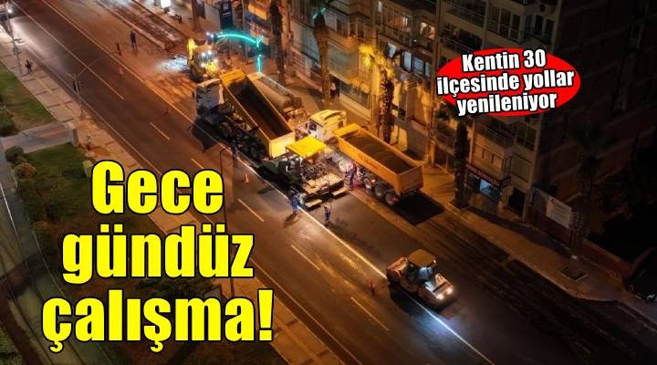 ?zmir Büyük?ehir Belediye Ba?kan? Dr. Cemil Tugay’?n ?zmir genelinde ba?latt??? asfalt seferberli?i tüm h?z?yla devam ediyor. ?zmir Büyük?ehir Belediyesi Fen ??leri Dairesi Ba?kanl???’n?n koordinesinde ?ZBETON ekipleri taraf?ndan 30 ilçede yürütülen yol yap?m, yenileme ve onar?m çal??malar? kent genelinde gözle görülür de?i?ime neden oldu. Ba?kan Dr. Cemil Tugay’?n göreve geldi?i 1 Nisan 2024 tarihinden günümüze kadar geçen bir buçuk y?ll?k dönemde, ?ehir içi ve k?rsalda toplam 557 bin 260 ton asfalt çal??mas? yürütüldü. Çal??malar kapsam?nda Fen ??leri Dairesi Ba?kanl??? ekipleri, 84 cadde ve bulvar, 150 sokak ve 6’s? köy ba?lant? yolu olmak üzere toplam 153 kilometrelik yolun yenileme çal??mas?n? tamamlad?. Tamamlanan alanlar yepyeni görünüme kavu?urken ula??mda konfor ve güven sa?land?.