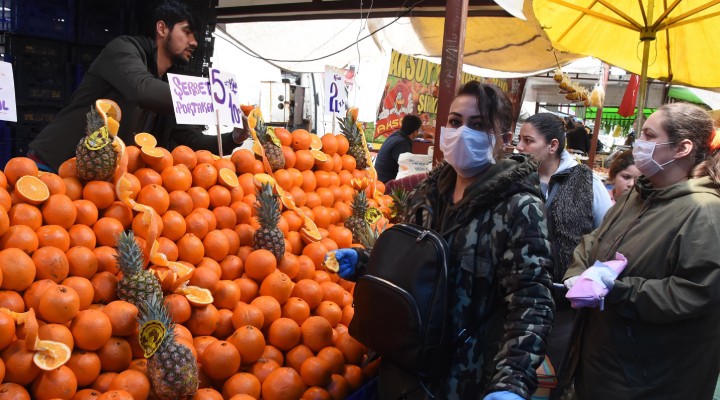 Çin'de ortaya ç?kan ve ölümlere neden olan koronavirüs salg?n?, Türkiye'yi de tehdit ediyor. Ülke genelinde vatanda?lar?n virüsten etkilenmemesi için birçok önlem al?n?yor. Ancak önlemlere ra?men vatanda?lar günlük ya?amlar?n? da sürdürmeye çal???yor. ?zmir'de kurulan semt pazarlar?nda al??veri? yapanlardan kimisi hiçbir önlem almazken, kendisini maske, eldiven ve kolonya ile virüsten korumaya çal??anlar da vard?.
