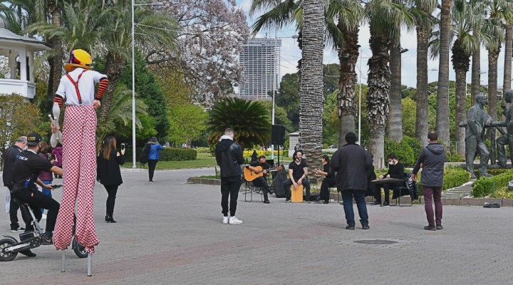 ?zmir Büyük?ehir Belediye Ba?kan? Tunç Soyer’in Haziran sonuna kadar büyük çapl? konser organizasyonu yapmak yerine 1,5 milyon liral?k bütçeyi sanatç?lar için kullanma karar? do?rultusunda kentin çe?itli noktalar?nda sanat etkinlikleri düzenlendi. Sanatç?lara destek kapsam?nda 15 Nisan Dünya Sanat Günü’nde ?zmir Müzisyenler Derne?i, Müzisyenler ve Sahne Sanatç?lar? Derne?i ve (Müzik-Sen) Müzik ve Sahne Sanatç?lar? Sendikas? sanatç?lar? görev ald?. Projeyle toplam 80 müzisyene biner TL destek sa?land?.