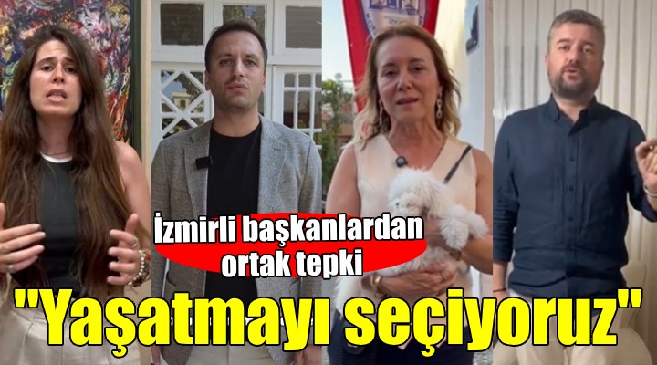 CHP ?zmir ?l Ba?kan? ?enol Aslano?lu ilk olarak Çe?me Belediye Ba?kan? Lal Denizli'yi etiketleyerek fitili ate?ledi. Çe?me Belediye Ba?kan? Lal Denizli'nin videolu payla??m? sonras?da "Ya?atmay? seçiyoruz" etiketiyle zincirleme mesajlar art arda geldi. Konak Belediye Ba?kan? Nilüfer Ç?narl? Mutlu, Buca Belediye Ba?kan? Görkem Duman, Bornova Belediye Ba?kan? Ömer E?ki, Dikili Belediye Ba?kan? Adil K?rgöz, Efes Selçuk Belediye Ba?kan? Filiz Cerito?lu Sengel, Seferihisar Belediye Ba?kan? ?smail Yeti?kin, Balçova Belediye Ba?kan? Onur Yi?it, Çi?li Belediye Ba?kan? Onur Emrah Y?ld?z, K?n?k Belediye Ba?kan? Sema Bodur, Menderes Belediye Ba?kan? ?lkay Çiçek, Ödemi? Belediye Ba?kan? Mustafa Turan, Narl?dere Belediye Ba?kan? Erman Uzun, Tire Belediye Ba?kan? Hayati Okuro?lu, Gaziemir Belediye Ba?kan? Ünal I??k da videolu payla??mlarla düzenlemeye tepki gösterdi.