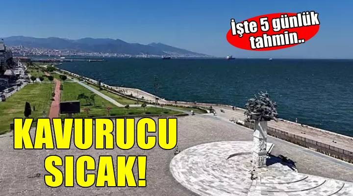SONKALE?ZM?R- Meteoroloji Genel Müdürlü?ü verilerine göre ?zmir'de yeni haftada da s?cak ve bunalt?c? hava etkili olacak. Haftan?n ilk gününe 37 derece ile ba?layan kentin merkez ilçelerinde s?cakl?k, hafta sonuna kadar 41-44 derece dolaylar?nda seyredecek. Bayrakl?'da cuma günü 44, Bay?nd?r'da per?embe günü 45 derece s?cakl?k ölçülmesi tahmin ediliyor.